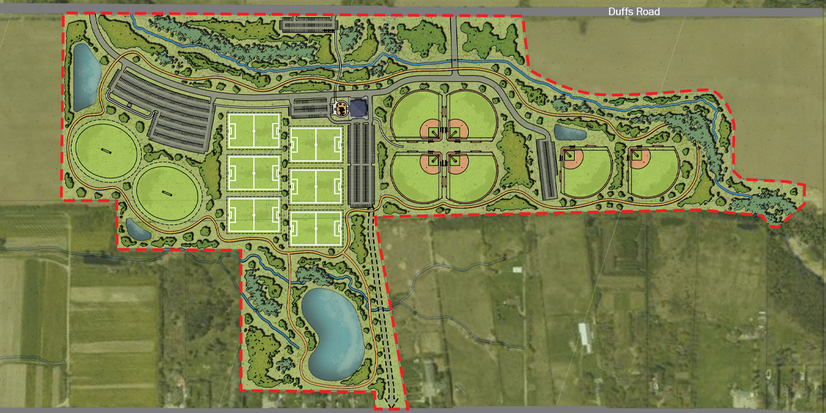 - The site is planned to accommodate six baseball diamonds, six soccer fields, and two full-size cricket pitches. The final mix will be refined over time based on community needs and input.